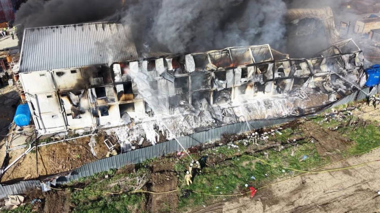 Esenyurt’ta işçilerin kaldığı büyük konteyner alev alev yandı