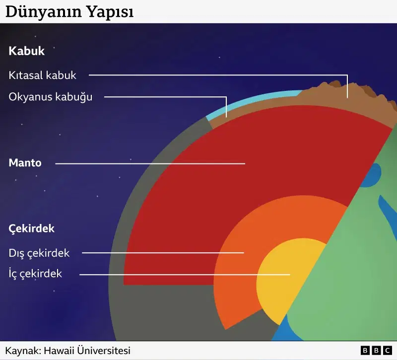 BBC’ye konuşan bilim insanı, “Üzerinde yaşadığımız, ince ve çok kırılgan katman kabuk” diye anlatıyor.