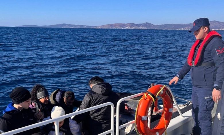 İzmir’in Çeşme ilçesi açıklarında motor arızası nedeniyle sürüklenen lastik bot içerisinde bulunan 26’sı çocuk 45 sistemsiz göçmen Kıyı Güvenlik takımları…