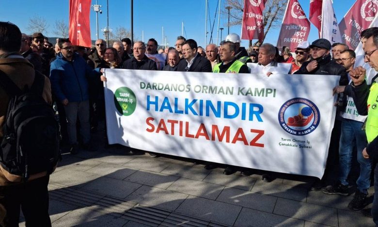 Çanakkale’de Birleşik Kamu İş Konfederasyonu’na bağlı Tarım Orman İş Sendikası, Çanakkale Belediye Başkanı Muharrem Erkek, siyasi temsilciler, demokratik kitle örgütleri…